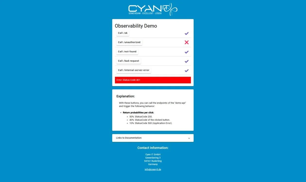 Im ersten Beitrag zu diesem Thema haben wir uns angesehen, wie Logs, Traces und Metriken zusammenspielen. Nun wollen wir diese Konzepte anhand einer praktischen Demo-Anwendung erlebbar machen: Wir haben ein einfaches Angular-Frontend, das verschiedene Endpoints in einem minimal gehaltenen ASP.NET Core Backend aufruft. Diese Endpoints antworten mal erfolgreich (HTTP 200), mal mit speziellen Statuscodes (404, 400) oder lösen sogar echte Fehler (HTTP 500) aus. Auf diese Weise können wir anhand der erzeugten Observability-Signale direkt erkennen, was im System passiert – und wie Autoinstrumentation uns dabei unterstützt.